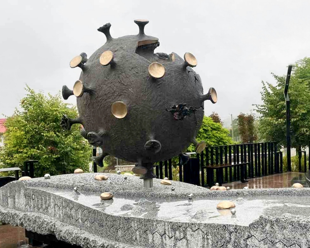 У місті Городок на Хмельниччині відкрили пам'ятник у вигляді молекули COVID-19. Його присвятили лікарям, які врятували тисячі українців під час пандемії.