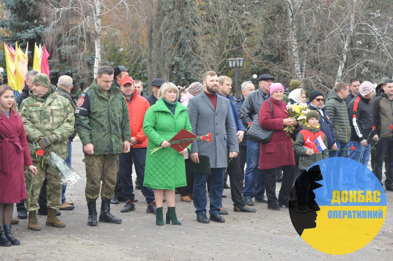 Невелика компанія місцевих колаборантів, бойовиків та лояльних до "руського міру" жителів покладали до ніг "вождя" квіти.
