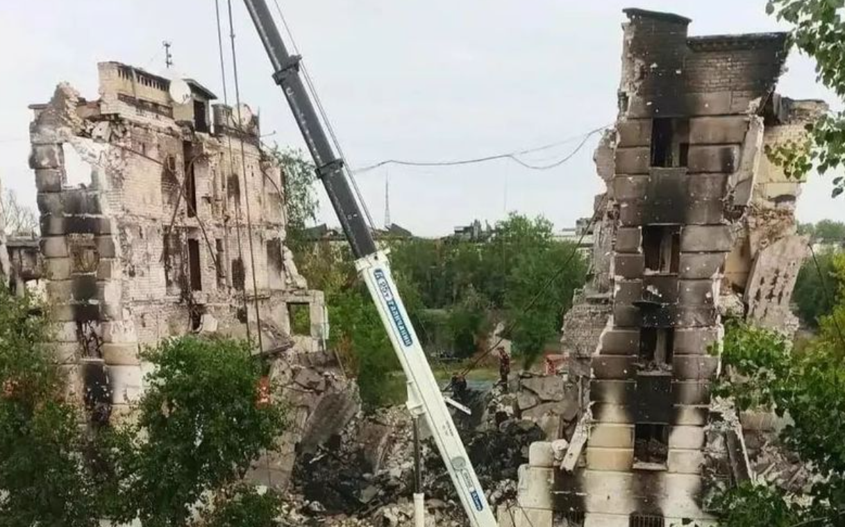 У мережі з'явилося фото, на якому видно, як в окупованому Сєвєродонецьку демонтують зруйнований житловий будинок. Судячи з фото, зроблено воно було раніше. Але з того часу в місті мало що змінилося, повідомляє Час Пік.