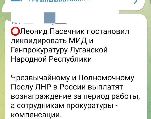 "Постановляю ліквідувати міністерство закордонних справ Луганської народної республіки", - йдеться в "указі".
