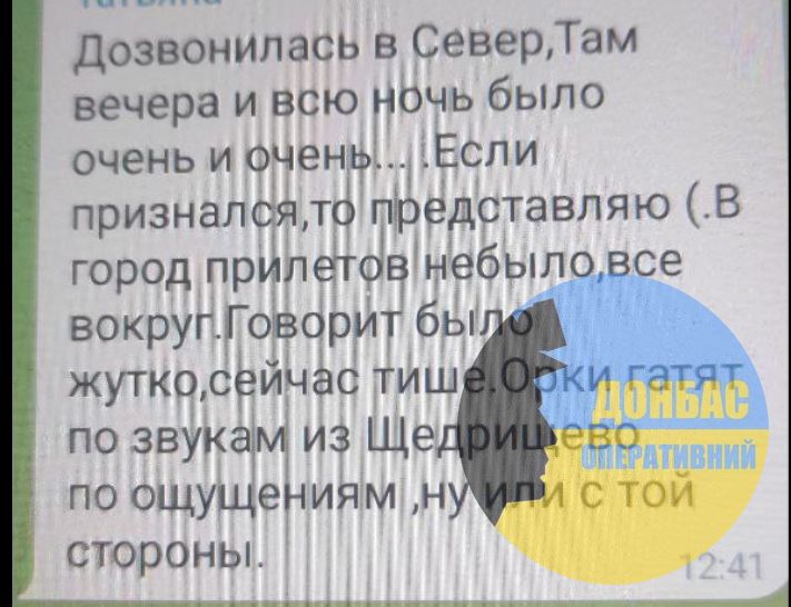 "Додзвонилася до Сєвєродонецька. Там увечері було дуже і дуже. У місто прильотів не було. За звуками окупанти гатять із Щедрищево чи з того боку", - розповідають очевидці.