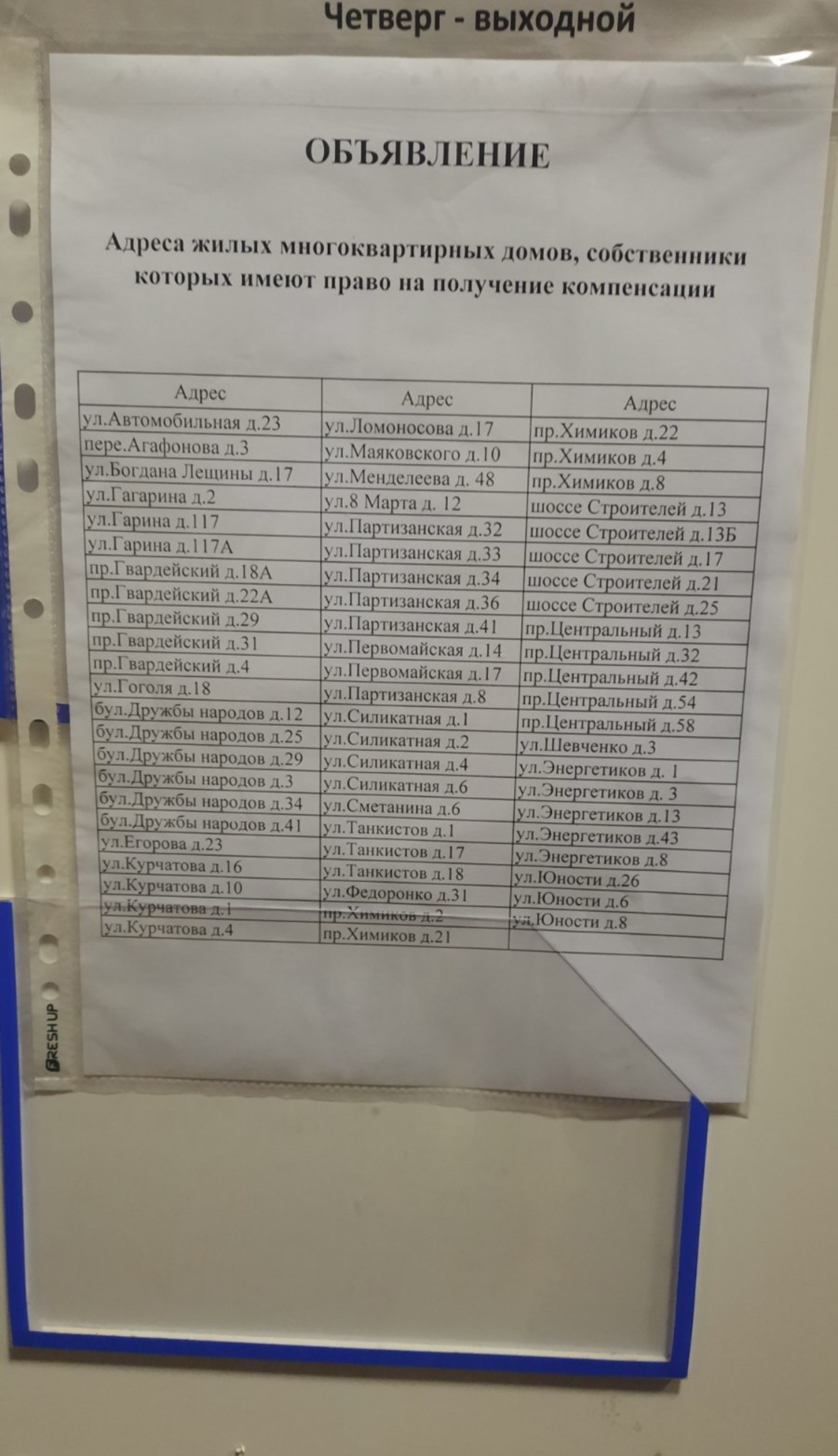 У списку, зокрема, є багато адрес центральної частини Сєвєродонецька.