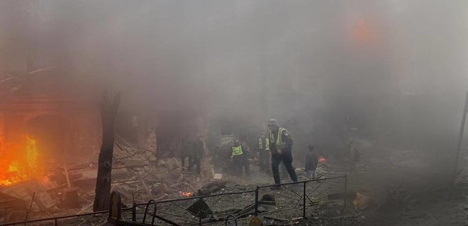 14:41. Голова київської обласної поліції Андрій Небутов повідомив, що на території одного із районів області зафіксовано попадання у багатоповерхівку. Почалася пожежа. Поліція працює на місці події.