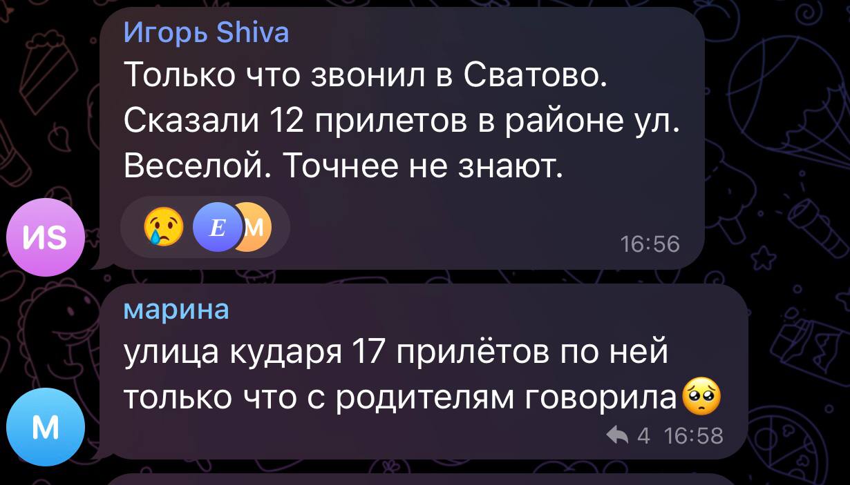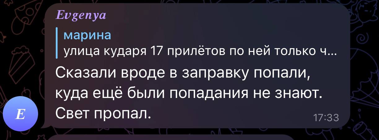 "Додзвонилася додому, район старого автовокзалу, сказали тільки, нарахували прильотів 15, було до 20, було видно, як летіли палаючі ракети й вибух в районі Веселої", - пишуть у мережі.