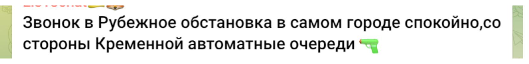 "Дзвінок у Рубіжне: обстановка в самому місті спокійна, з боку Кремінної чути автоматні черги",