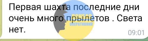 За повідомленням місцевих жителів, у місті немає світла, а в районі першої шахти в останні дні стало дуже багато "прильотів".