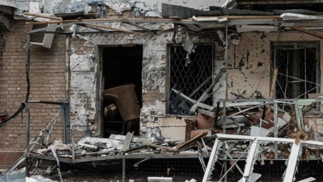 На фото показано, що багато будинків мають пошкодження внаслідок обстрілів. Люди кинуті напризволяще і змушені самі займатися ремонтом. А той так званий ремонт, яким займаються росіяни, більше схожий на шкідництво, через яке будинки ще більше ушкоджуються.