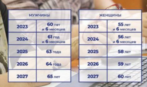 Так, чоловік, який досяг віку 60 років у 2023 році, матиме право на призначення пенсії за віком у 60 років та 6 місяців, жінка, відповідно, у 55 років та 6 місяців, при досягненні 55 років у 2023 році.