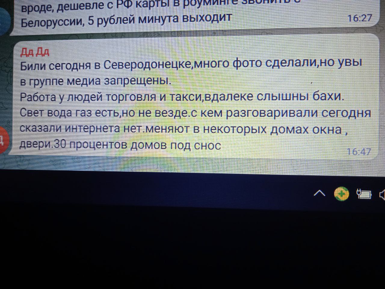 За словами користувача мережі, з роботою у місті проблема - або торгівля, або таксі. Комунікації (світло, газ, вода) є не скрізь. Вдалині чути вибухи.