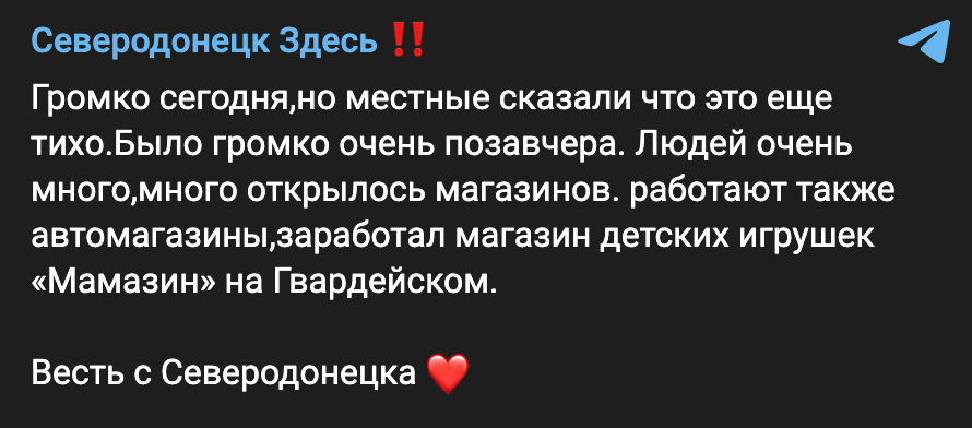 Ось тільки невідомо, для кого призначені товари в цьому магазині, адже дітей у місті практично немає та працювати людям ніде, щоб щось купувати. Як би не намагалися деякі користувачі мережі захоплено описувати сьогоднішній Сєвєродонецьк, усі чудово знають, що у місті розруха. Усі знають, що війна не принесла місту нічого, окрім смерті.