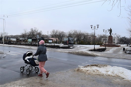 Наразі сквер просто не впізнати: доріжки розібрані, всюди сліди "звільнення" - воронки від "прильотів", конструкції з іменами та патріотичними сюжетами перекинуті на брудній землі, понівечені будівлі навколо.