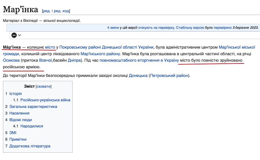 У мирній Мар'їнці проживало близько 10 000 населення. До приходу "руського миру" місто жило розміреним життям. Але тепер навіть Вікіпедія внесла поправки до інформації про місто.
