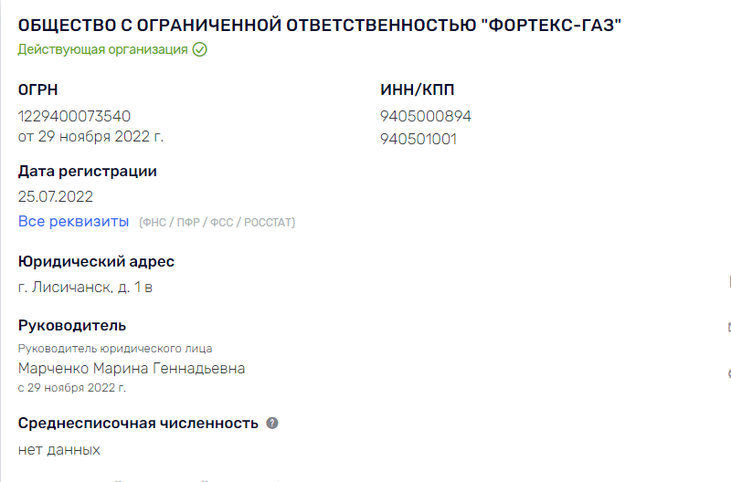 Марина Марченко — дружина колишнього заступника Лисичанського міського голови та ідеолога “руської весни - 2014” в місті Володимира Марченко зареєструвала ТОВ “Форекс-газ”. До широкомасштабного російського вторгнення в Україну у 2022 році вона займалася реалізацією скрапленого газу в місті.