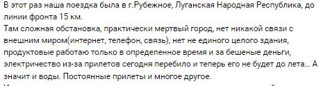 Зокрема, автори посту повідомляють, що місто "практично мертве": жодного зв'язку із зовнішнім світом, жодної цілої будівлі, продуктові магазини відкриті у певний час, а продукти коштують "шалених грошей". Крім того, за їхніми словами, нещодавні "прильоти" перебили електрику "і тепер її не буде до літа... а отже й води":