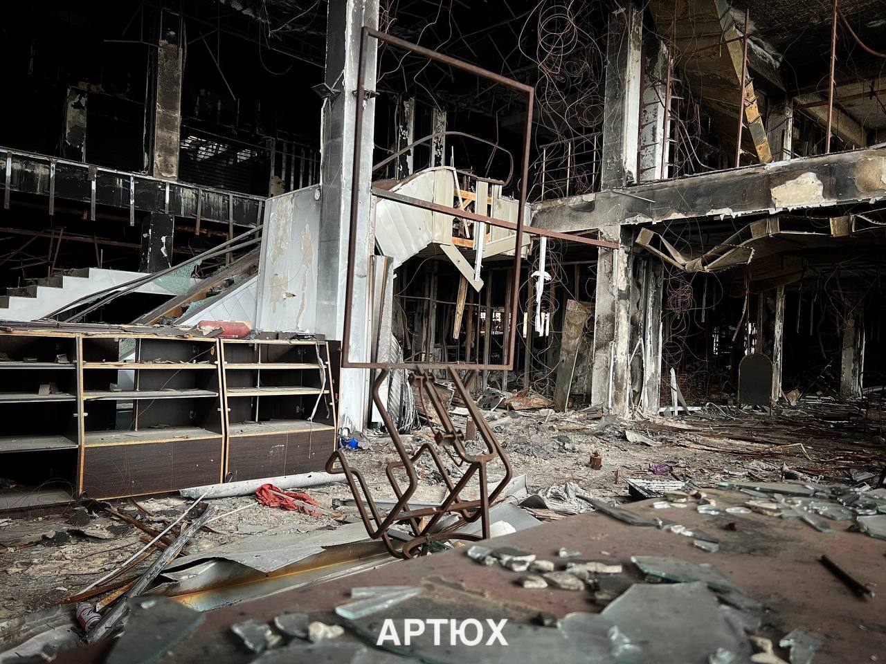Росіяни "визволили" Сєвєродонецьк, в якому раніше вирувало життя, і перетворили його на суцільні руїни. Майже на кожному будинку можна побачити ознаки "руського миру". Зокрема, від Торгового центру "Кристал" не залишилось майже нічого. На фото видно зсередини будівлю, яка була вщент зруйнована російськими обстрілами. Стіни ТЦ почорніли від пожеж, а на підлозі можна помітити уламки скла.
