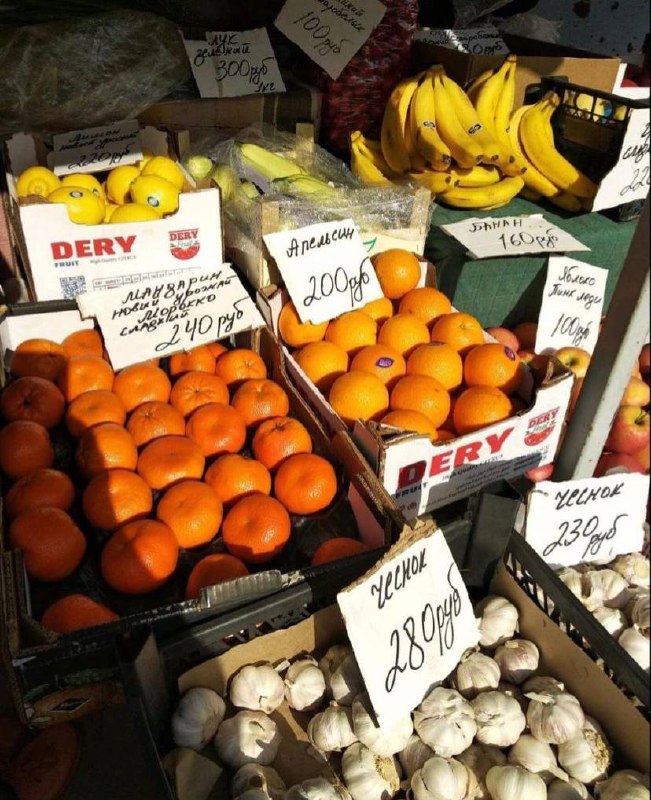 Ціни на продукти дуже високі. За кілограм яблук потрібно заплатити 100 рублів, за часник – 230-280 рублів, а за молоду капусту – 130.