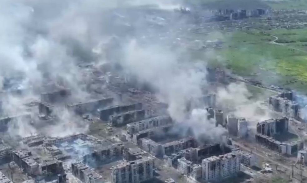 На одному з відео можна побачити Бахмут з висоти пташиного польоту. Усе місто перетворилось на суцільні руїни, у ньому зовсім не залишилось ознак життя. Лише можна помітити наслідки постійних бойових дій.