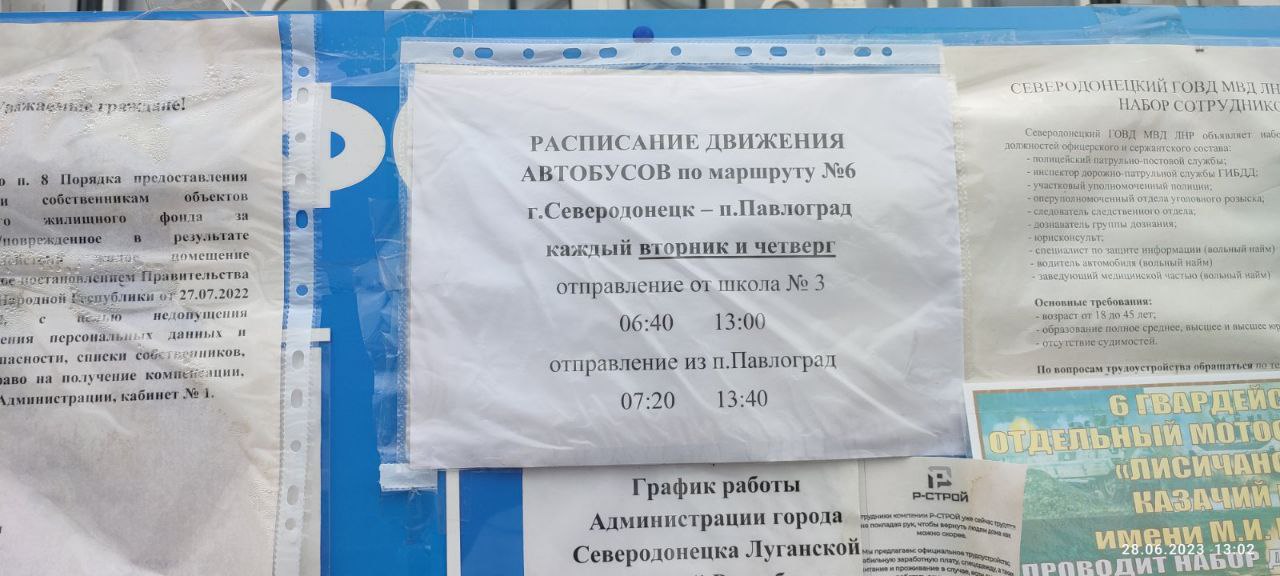У тимчасово окупованому Сєвєродонецьку Луганської області через відсутність мобільного зв'язку та інтернету все "по-старому". Паперові оголошення, черги пенсіонерів, автобуси, які ходять двічі на тиждень - сьогоднішня реальність міста.