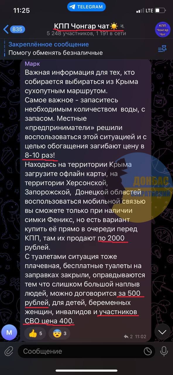 Повернутися додому через міст наразі не вийде, тому прийдеться прямувати в обʼїзд через новоприєднані області. Тим часом місцеві мешканці вирішили скористатися даною ситуацією та трохи заробити. Ціни на все підскочили у 8-10 разів. Сімка коштує 200 рублів, скористуватися туалетом можна за 500 рублів, а для "пільгових" категорій - 400.