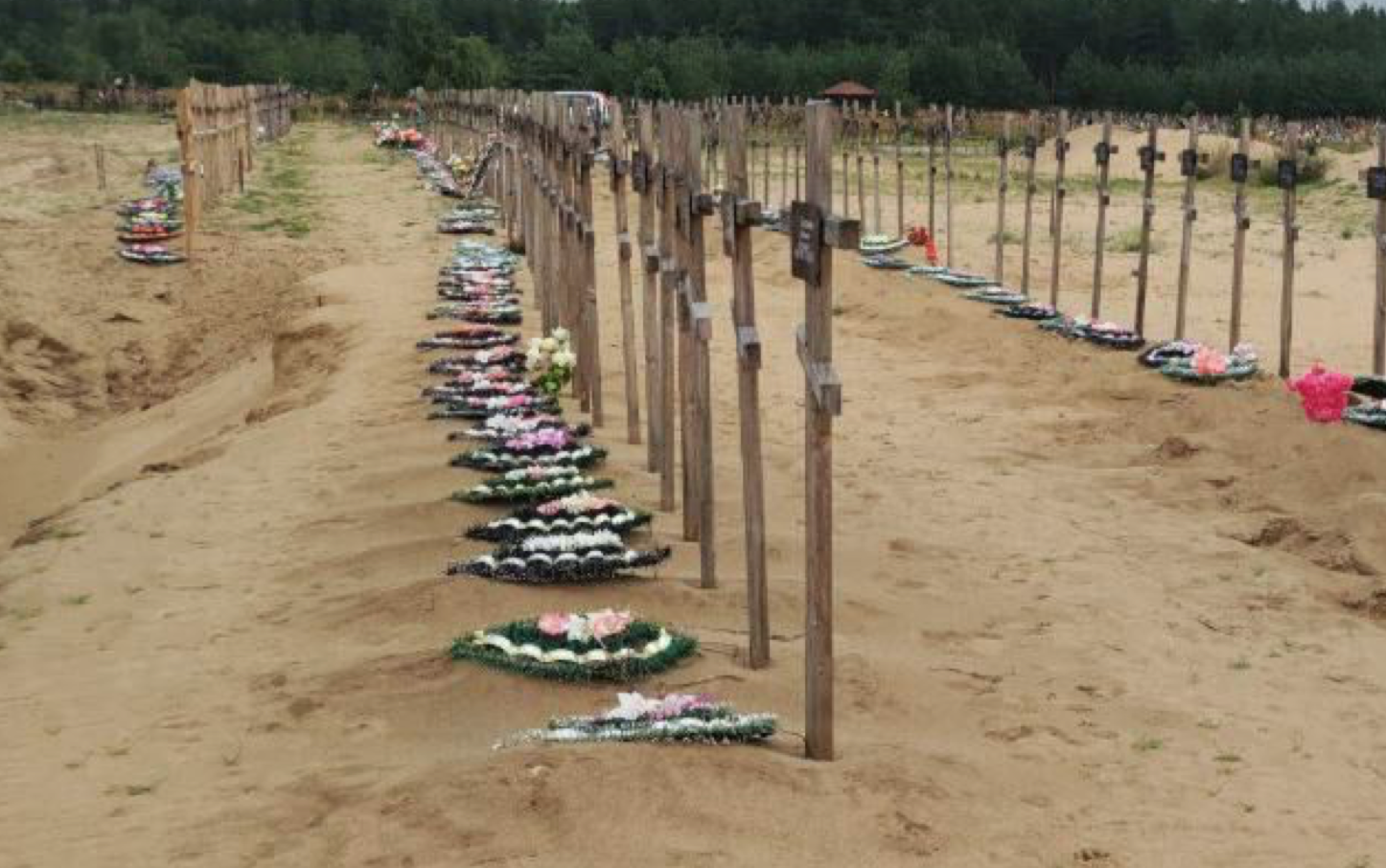 На фото десятки могил. На хрестах таблички з номером та написом "У процесі ідентифікації". Встановити особи громадян, які загинули від обстрілів, буде дуже складно навіть після звільнення міста.