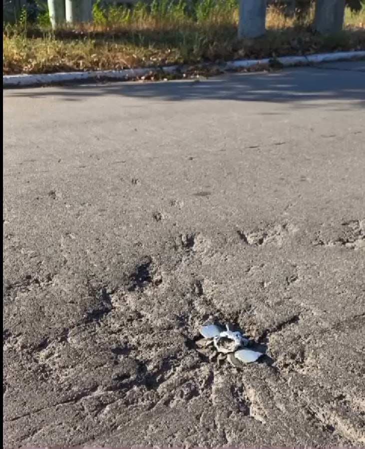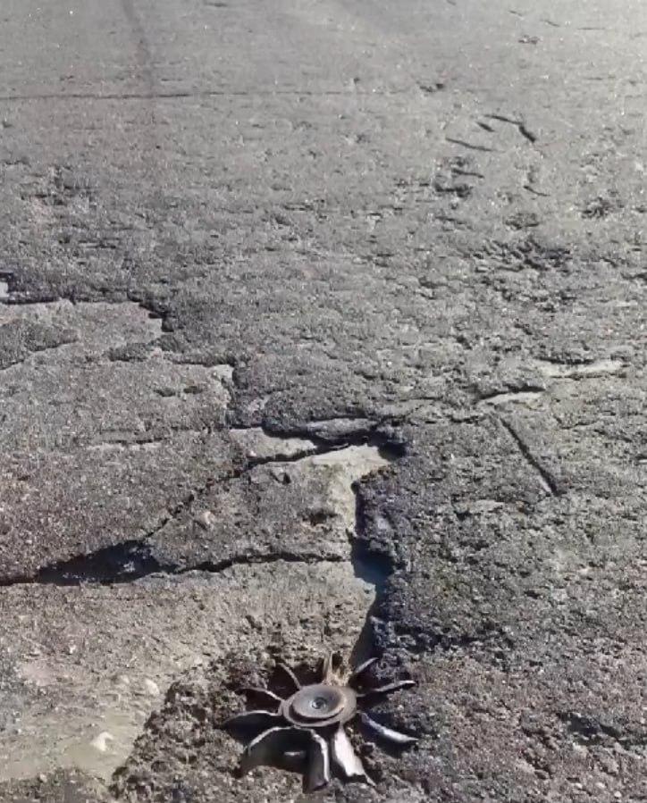 На нових кадрах помітно, що частини боєприпасів застрягли у дорозі. За словами автора повідомлення, фото зроблені в промисловій зоні міста.
