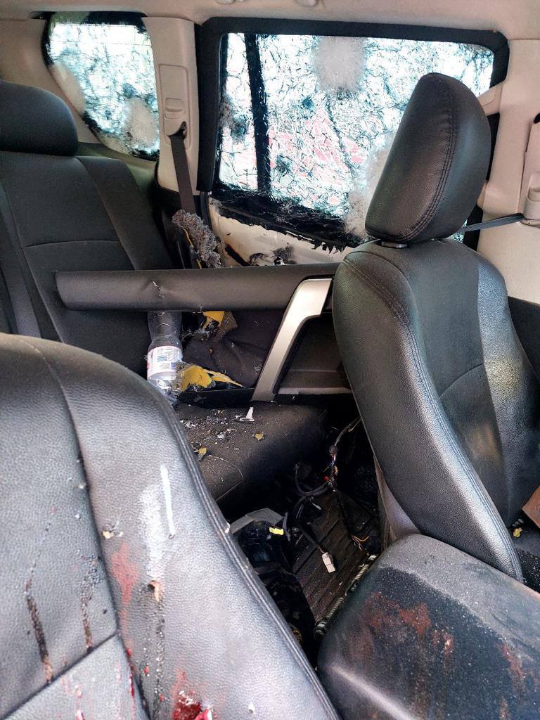 Отак виглядає службове авто херсонських патрульних, які сьогодні потрапили під обстріл.