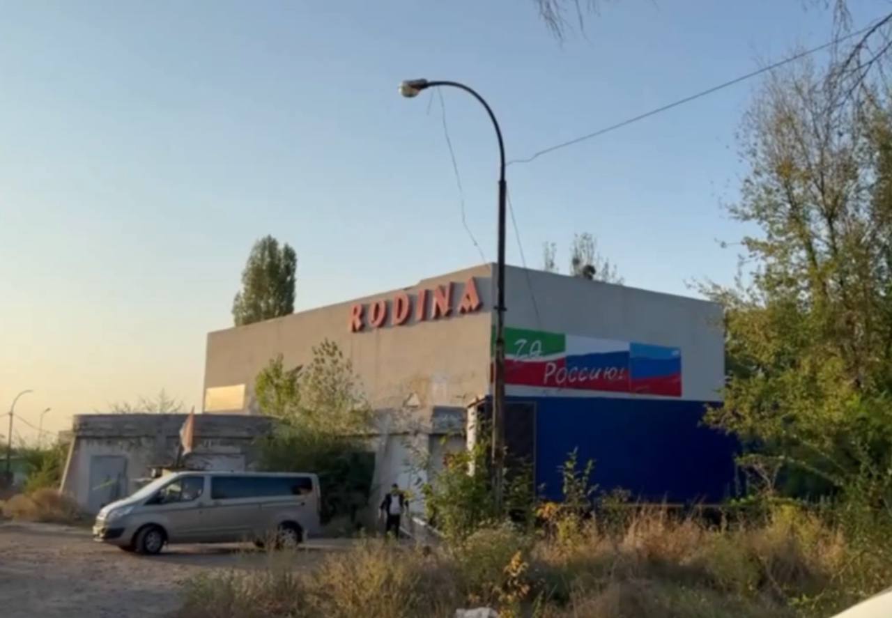 На занедбаній будівлі кінотеатру "Родина" (ГТВ) з'явився "триколор". Хоча мешканці цього району чекають від так званої "влади" водопостачання та електоренергії.