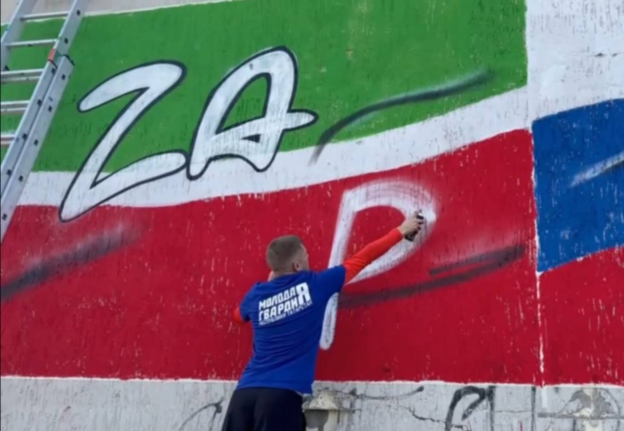 "Графітік" з Казані прибув до понівеченого міста за ініціативи організації "Молодая гвардия". Напередодні "дня возз'єднання" та сама "гвардія" провела у "підшефному" місті серію "патріотичних" заходів.