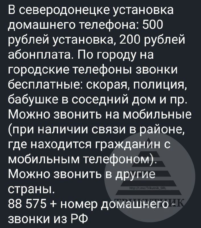 За словами жителів міста, встановлення телефону загалом обійдеться у 700 рублів. Зателефонувати можна буде "службам" Сєвєродонецька, або сусідам, які мають у своєму розпорядженні кошти для встановлення телефону. А ось здійснити дзвінок на мобільний - лише за наявності зв'язку, якого у регіоні не спостерігається досить довгий час.