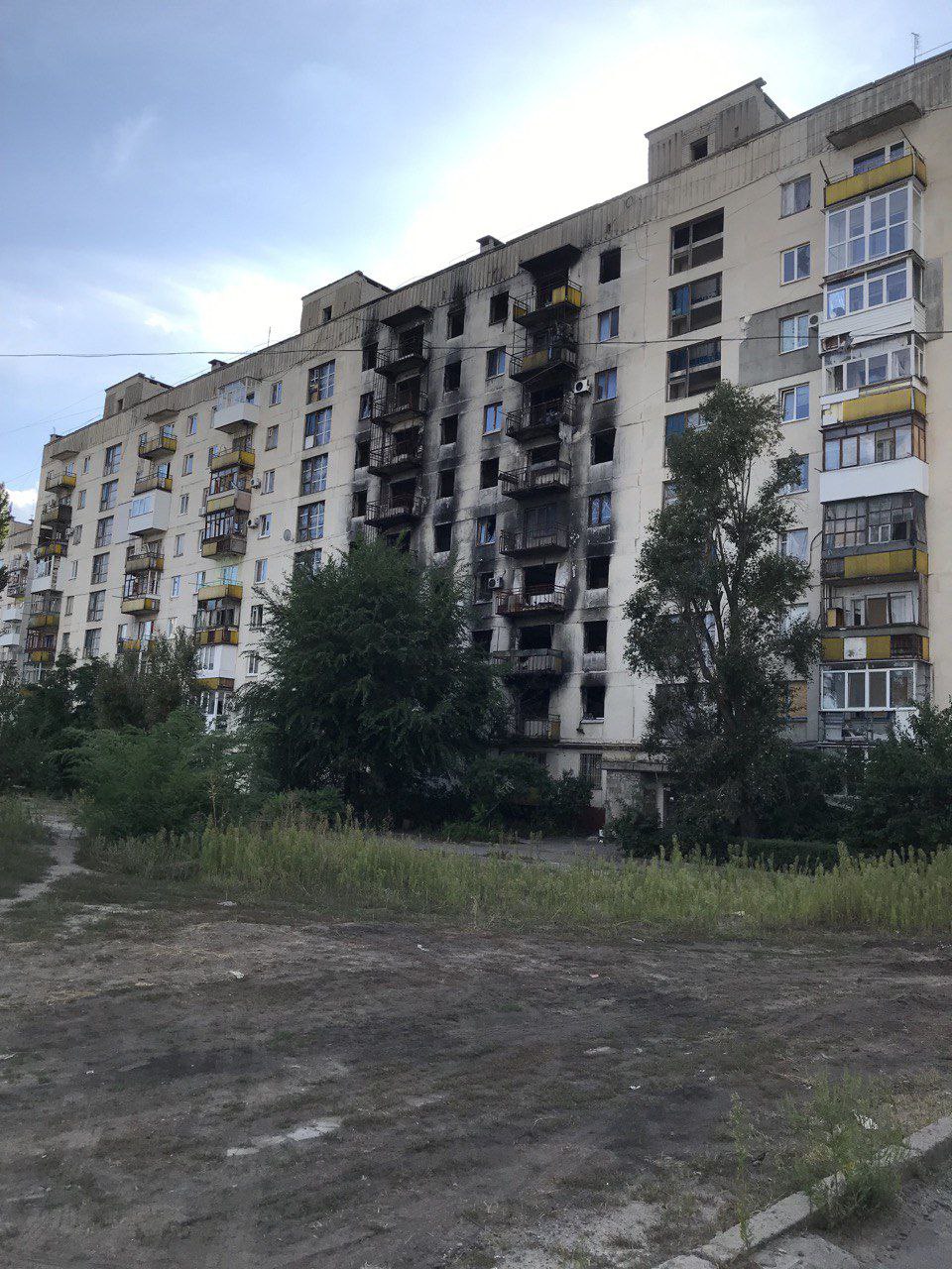 Тимчасово "звільнений" Сєвєродонецьк Луганської області змінився тільки за словами так званої "влади". За час окупації багатоповерхівки міста залишають зруйнованими та спаленими внаслідок ворожих обстрілів.