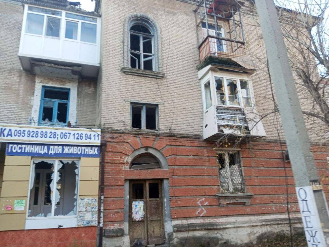 Судячи з напису, у цьому будинку раніше були клініка, аптека та готель для тварин. Імовірно, відновлювати будівлю зараз псевдовлада не збирається.