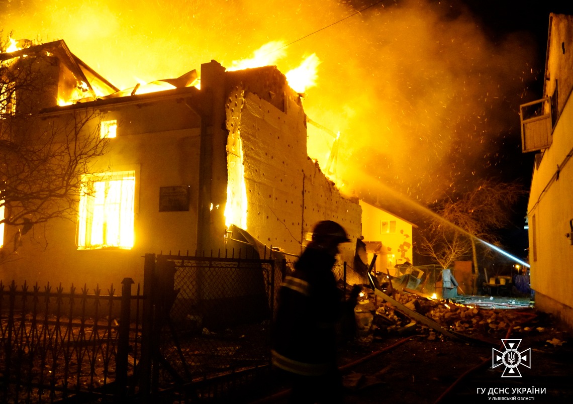 На Львівщині рятувальники ліквідують наслідки ворожої атаки. Вранці 1 січня російські окупанти завдали ударів безпілотниками по Львову та Дублянам.