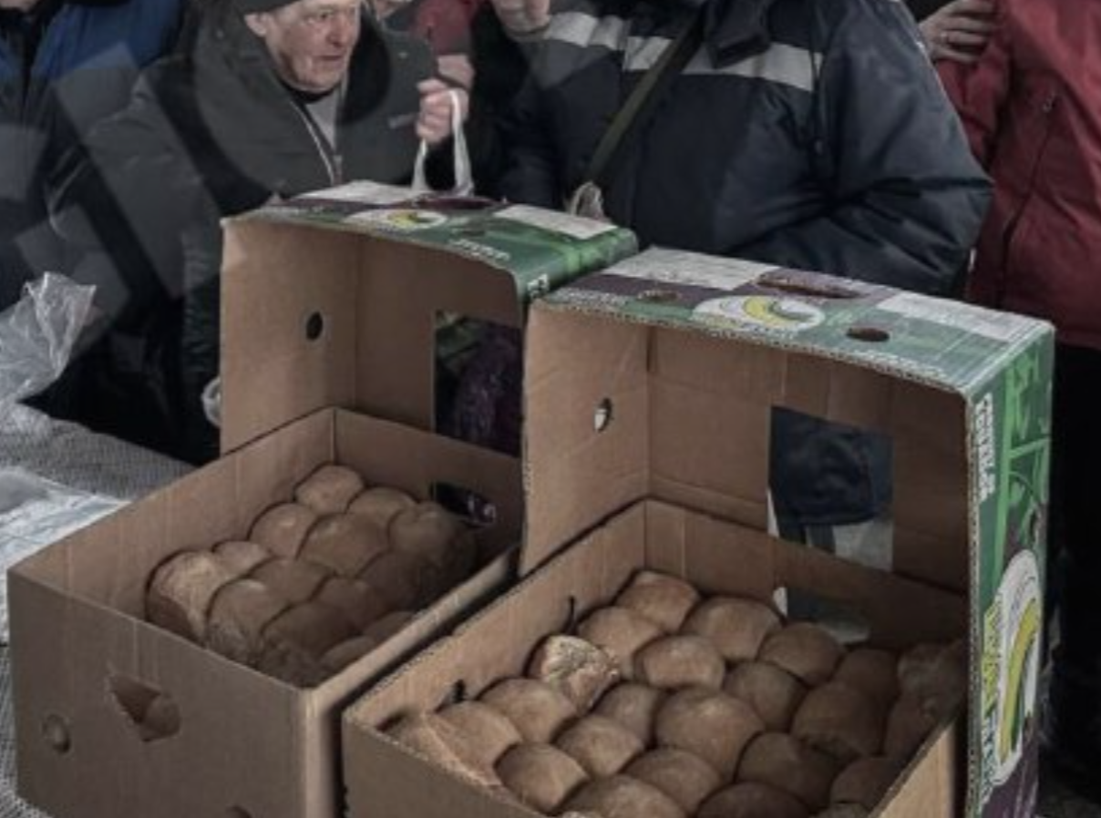 У мережі показали фото із роздачі хліба мешканцям Лисичнаська, передає Час Пік.