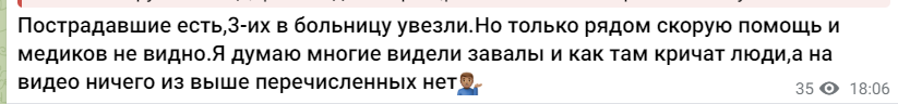Спочатку окупаційні ресурси повідомляли, що "троє людей постраждали, ще кілька десятків наводяться під завалами".