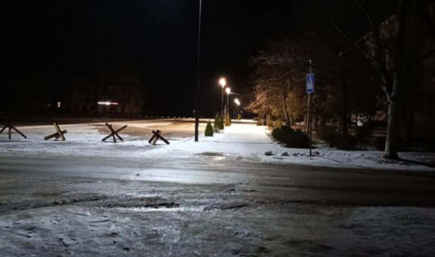 На фото показано, як виглядає окупований Сєвєродонецьк вранці. Вуличне освітлення є далеко не скрізь. У будинках світло практично не горить, що говорить про реальну кількість мешканців. Серед міста розставлені "їжаки". Людей рано-вранці немає зовсім.