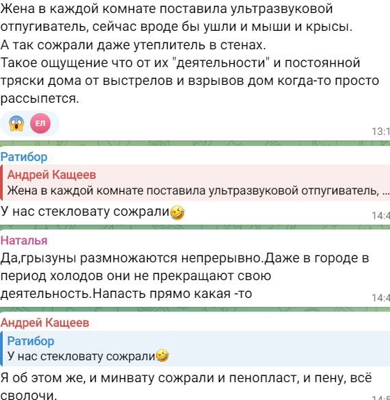 За словами Лисичанська, навіть у холод гризуни не припиняють "атакувати" житлові будинки, поїдають навіть утеплювачі у стінах.