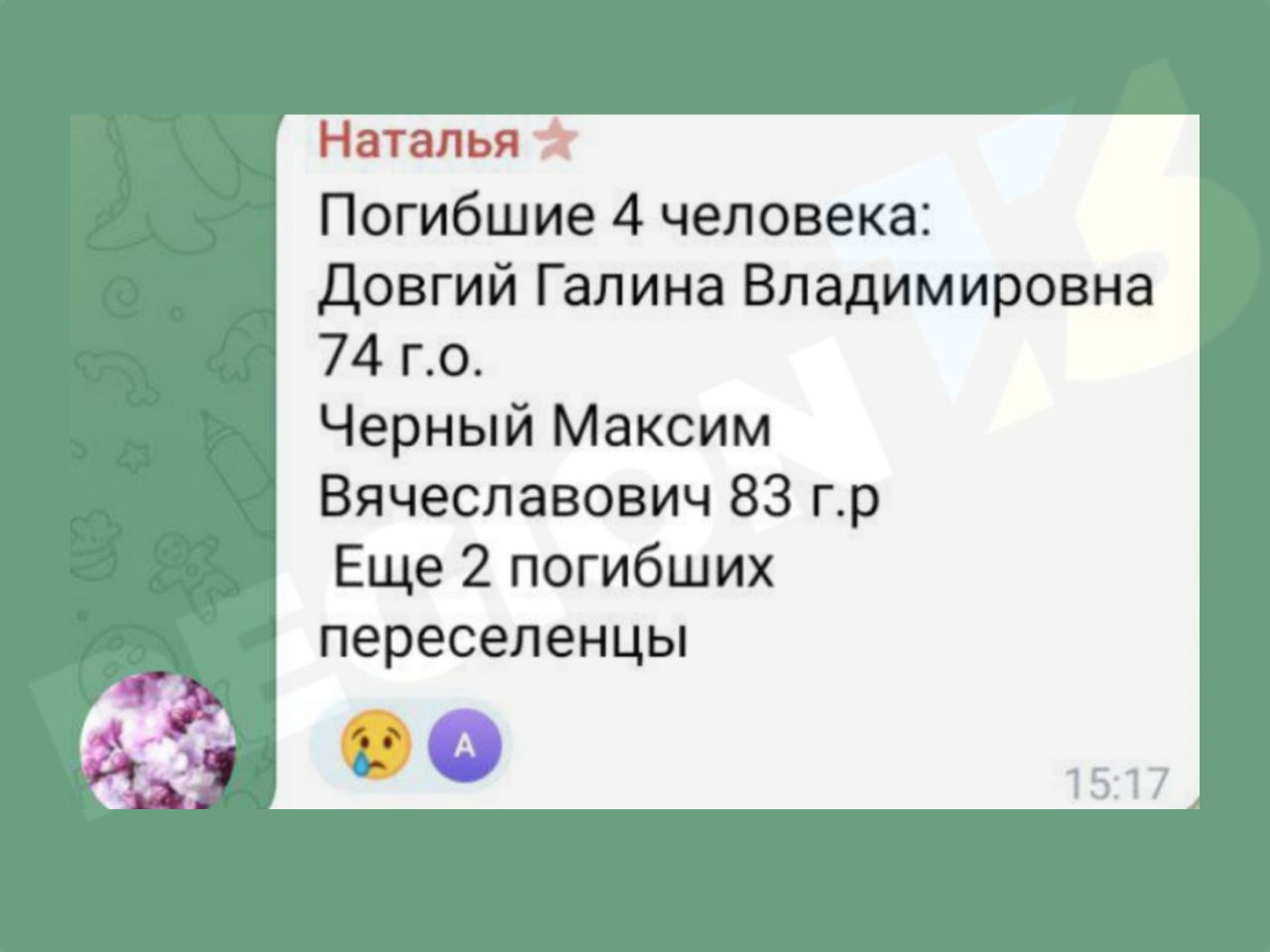 Зазначається, що в результаті обстрілу загинули двоє місцевих жителів і двоє "переселенців", передає Час Пік.
