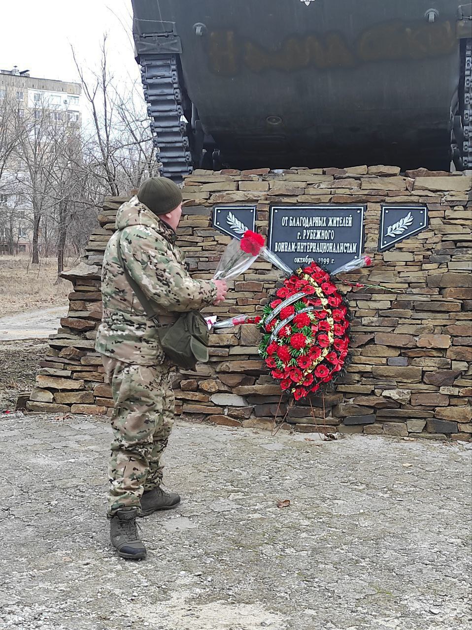 В "урочистостях" у місті також був помічений так званий "очільник" Рубіжного - Хортів. При цьому на пам'ятнику воїнам-інтернаціоналістам добре видно надпис "На Москву!", який не дуже успішно зафарбували комунальники.
