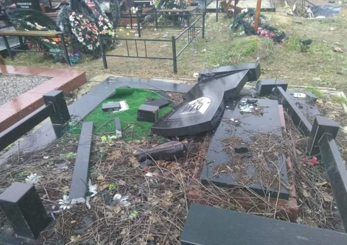 На відео видно, що над могилами українських воїнів поглумилися: пам'ятники повалені, розбиті або розстріляні...