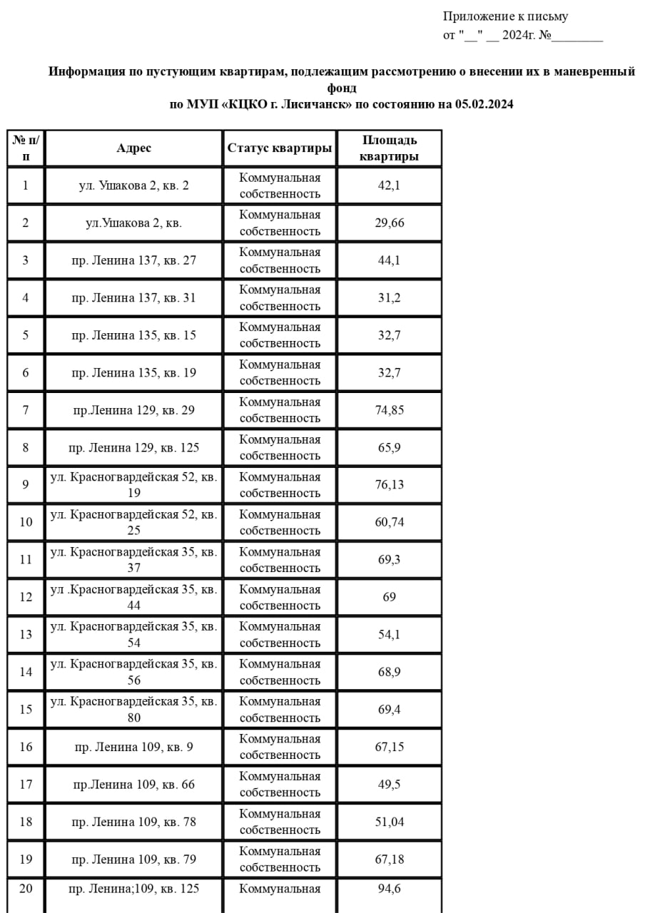Окупаційна "влада" Лисичанська Луганської області опублікувала список квартир, які підлягають незаконному заселенню.