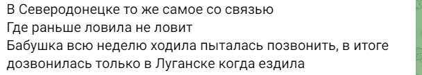 "У місті зв'язку практично немає, навіть десь раніше ловила. Так що комусь рідні не дзвонять - не переживайте".