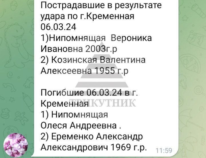 "У Кремінній під удар потрапив центр міста, є жертви. Внаслідок чого двоє людей загинули, ще двоє отримали серйозні поранення", - пишуть окупанти.