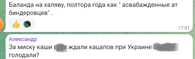 Кадри знято в р-ні ГТВ, біля пам'ятника "Літак", де окупанти розгорнули польову кухню - роздають кашу та хліб мешканцям міста.