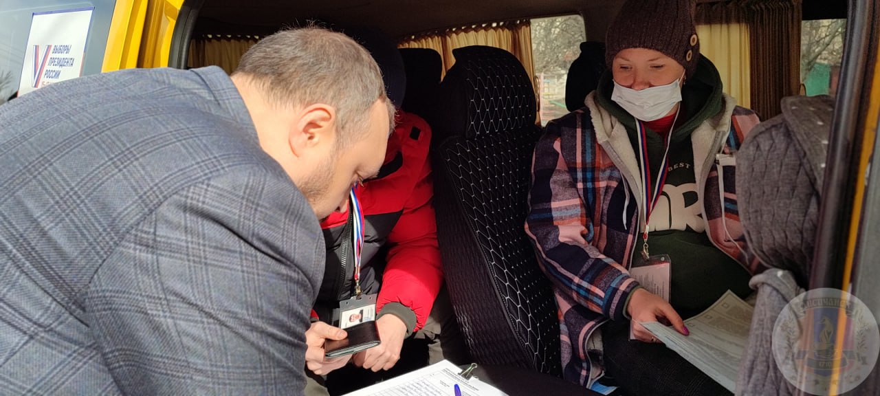 Також пропагандисти показали, як у місті відбувається дострокове голосування у маршрутці.