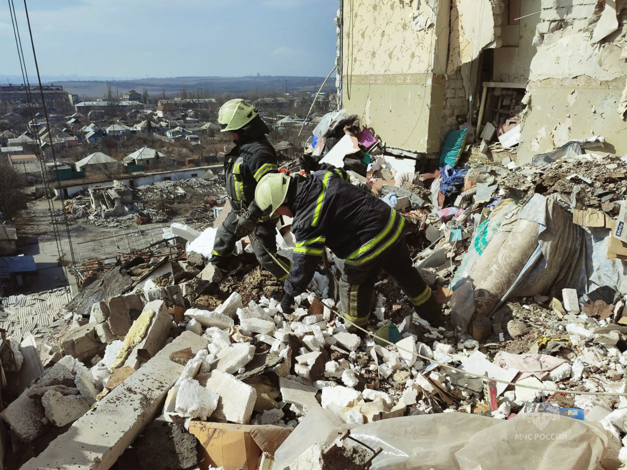 Як пишуть окупанти, "в результаті обстрілу загинув чоловік, зруйновано 2 квартири в 9-ти поверховому житловому будинку".