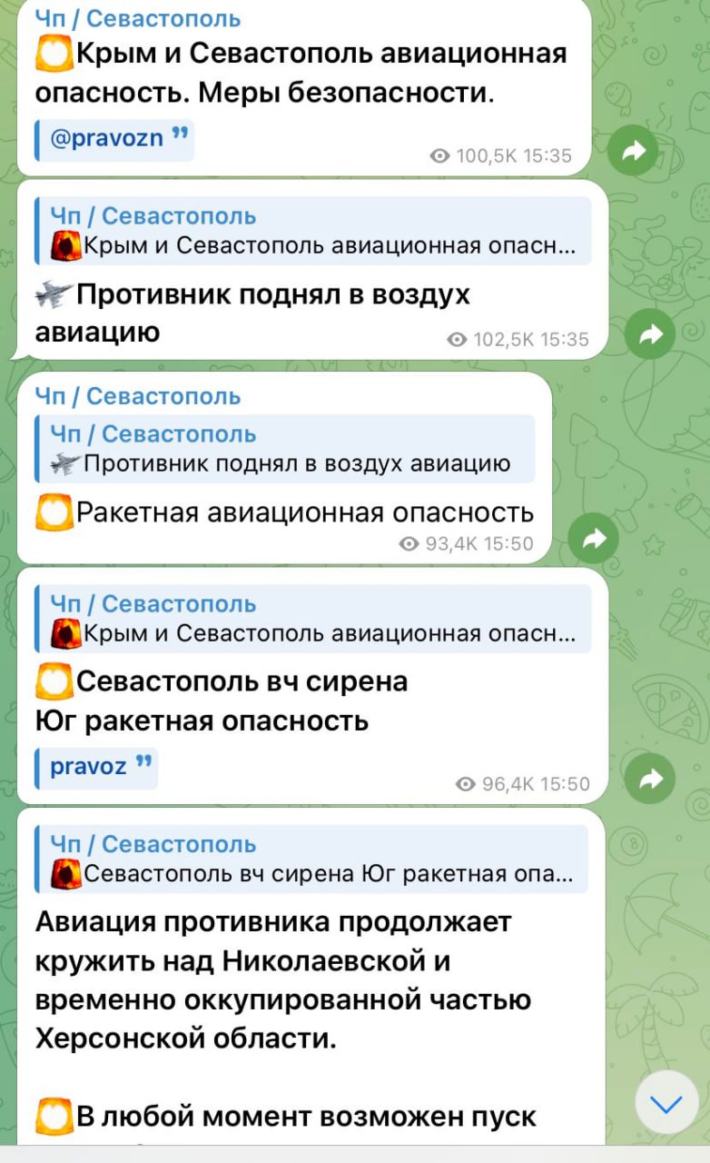 Зазначимо, що над Севастополем після оголошення повітряної тривоги було збито винищувач ВКС Росії. Як повідомляють російські пабліки, борт впав у море внаслідок "дружнього вогню" ППО.