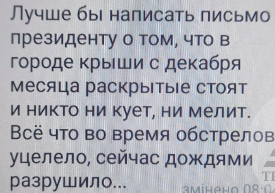"Вже те, що місто буде краще, мені здається такого не буде. У місті величезний занепад населення, від якого повернеться дай Боже чверть, багато хто без житла, і це житло навіть не будують, а латають, те, що вціліло, і то не все", - пишуть очевидці.