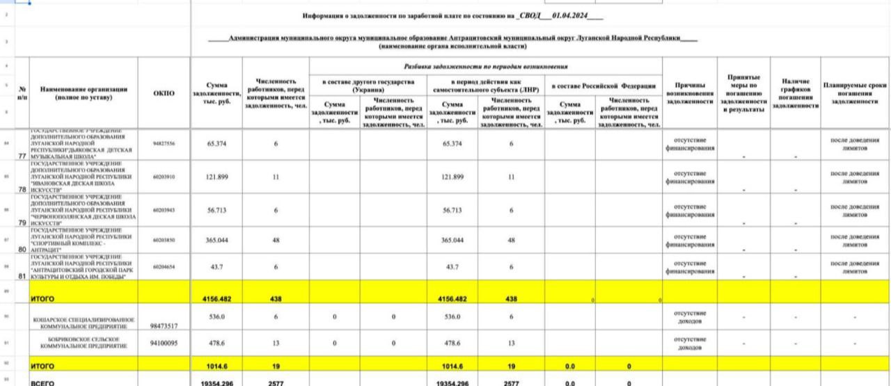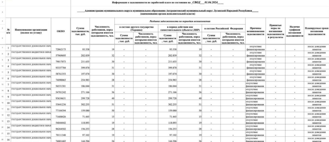 Згідно з офіційними документами так званої адміністрації Антрацитівського округу "ЛНР", понад дві з половиною тисячі працівників шкіл, дитсадків, ліцеїв, музеїв, будинків культури, а також комунальних підприємств не отримують зарплати ще із 2022 року. І все це неподобство відбувається "через відсутність фінансування".