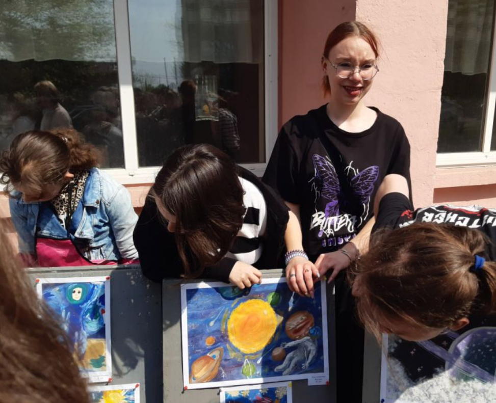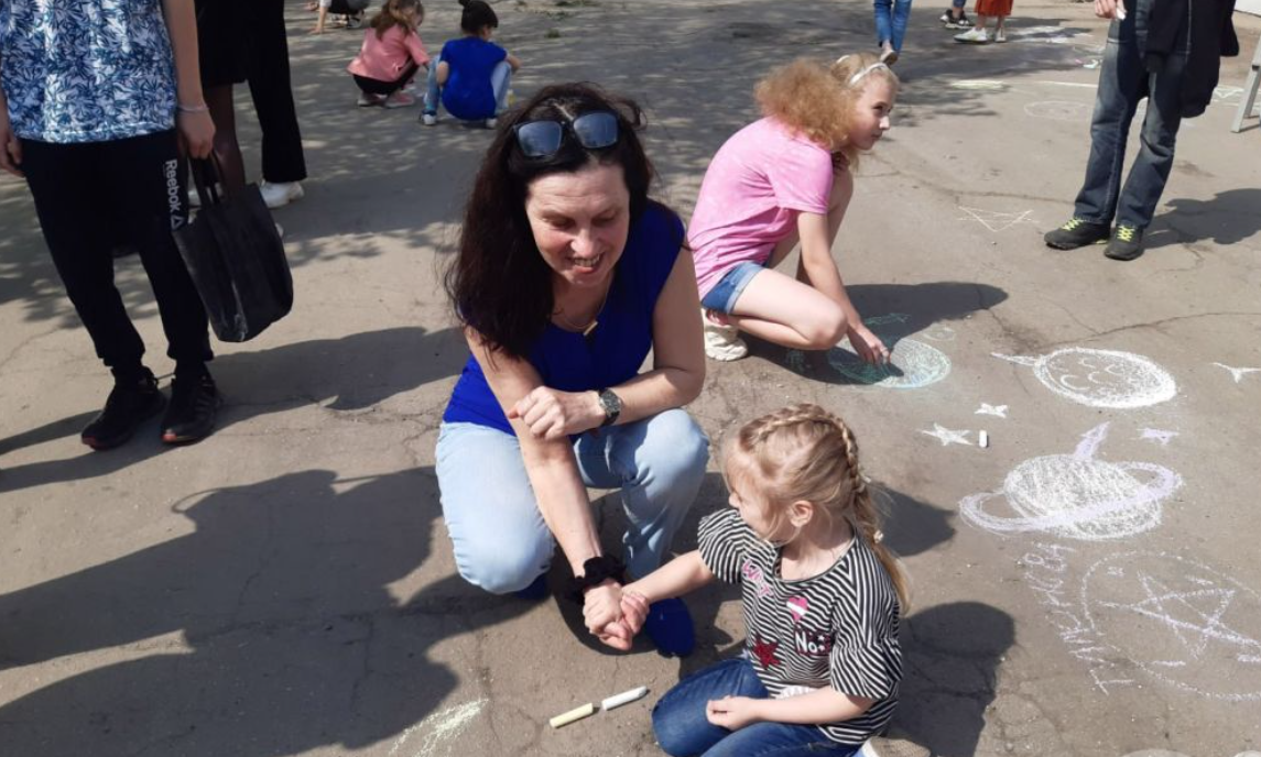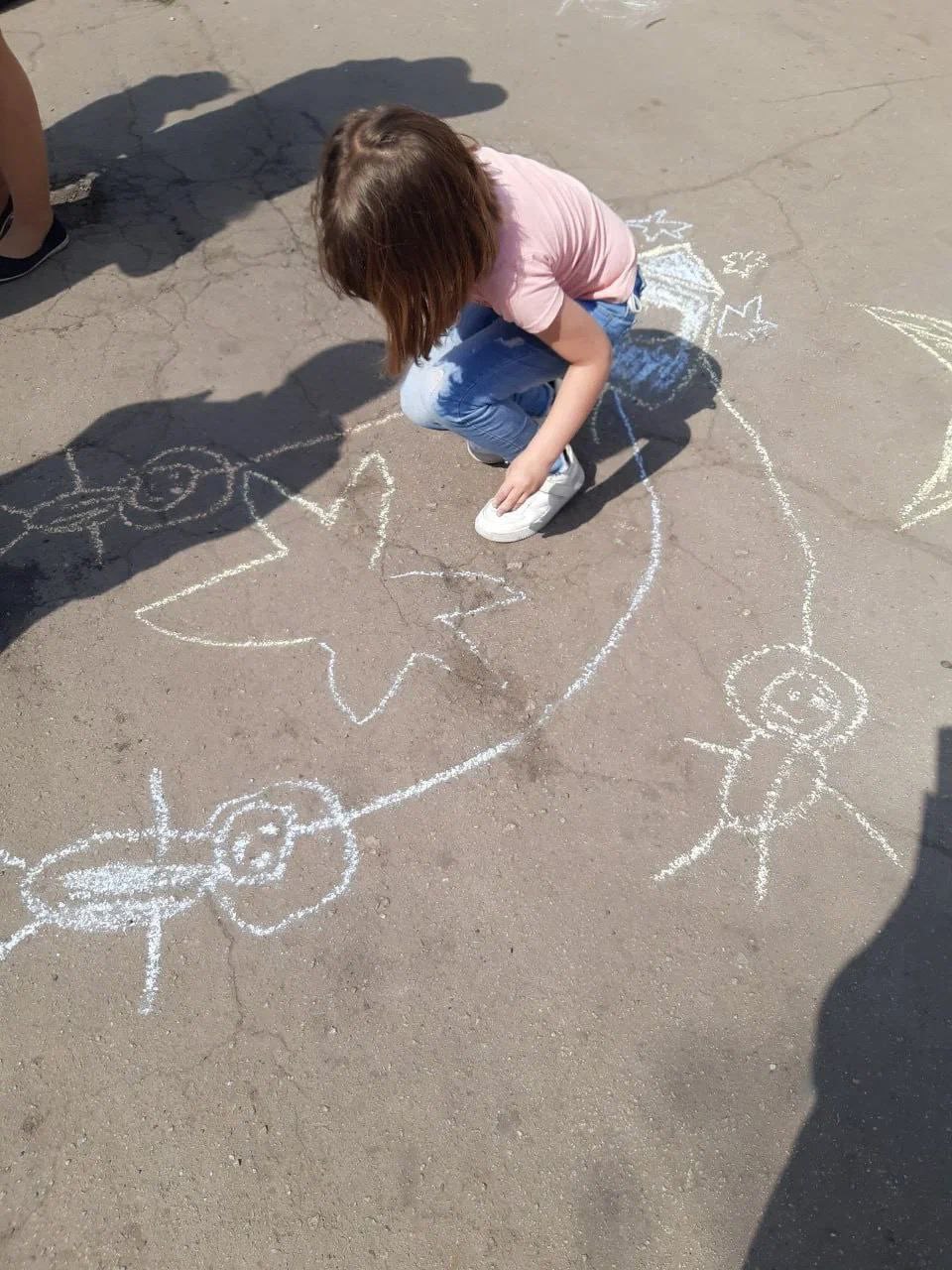 "Учні організували виставку дитячих творчих робіт та малюнків на асфальті. У них діти відображали своє уявлення про космос та позаземне життя", - йдеться у повідомленні.