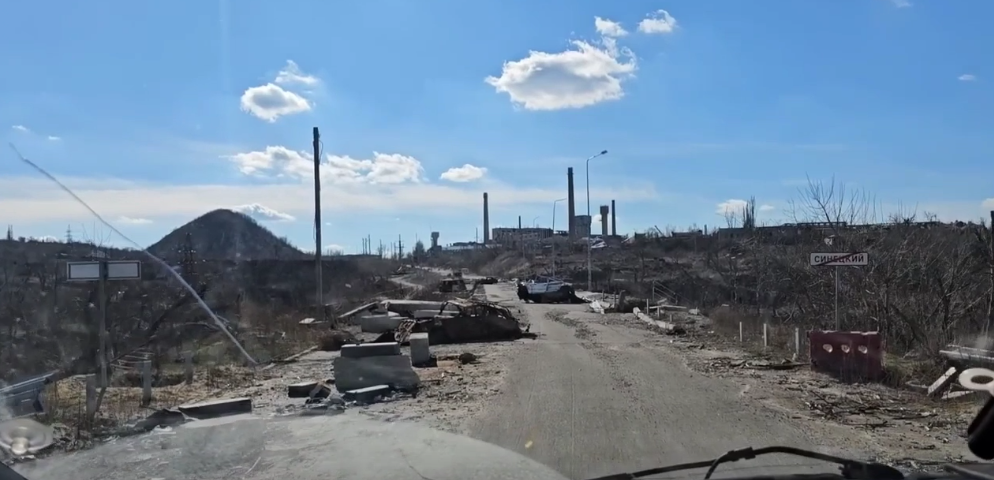 На ньому показано розбиті та занедбані багатоповерхові будинки на в'їзді до Сєвєродонецька, супермаркети, адмінбудівлі, що згоріли.